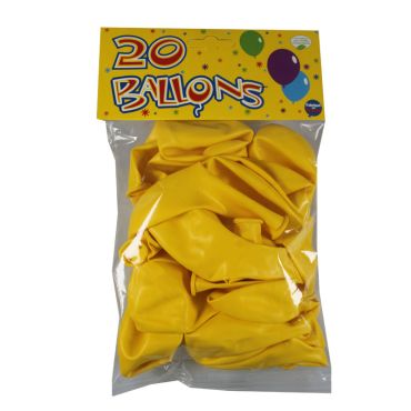 Sachet de 20 ballons opaques de couleur jaune, de 25 cm de diamètre, en latex et certifiés biodégradables.