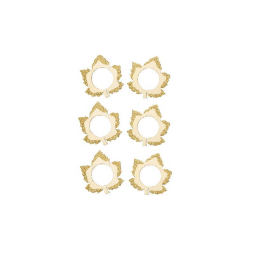 6 Ronds de Serviette Feuilles d'Erable en Bois Naturel et Paillettes Or