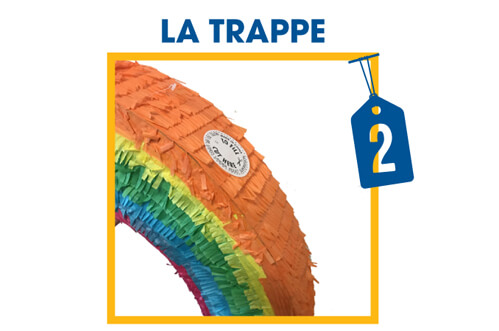Afin de situer l’ouverture qui permet de remplir la piñata, une pastille d’environ 5cm de diamètre est présente sur la piñata.
