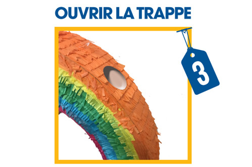 Pour ouvrir votre piñata vous pouvez pousser la pastille ou la couper à l’aide d’un ciseau.