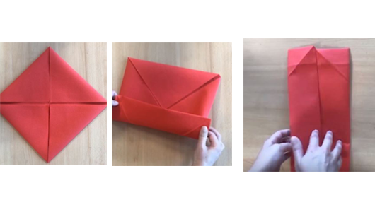 Pour voir le tuto complet en vidéo : Tuto pliage serviette en maillot.