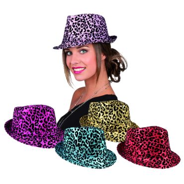 Borsalino motifs safari très tendance à porter en soirée pour la danse ou pour la frime ou pour ajouter une touche brillante et funky à votre tenue.