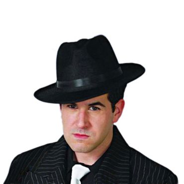 Chapeau de gangster type "Borsalino" en tissu noir – taille unique adulte