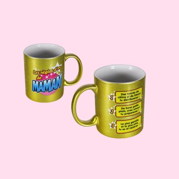 Pour la Fête des Mères, les enfants seront ravis d'offrir à leur Maman ce mug doré avec les 3 grandes règles d'or de Maman.
