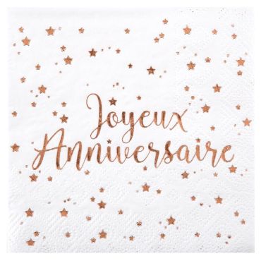20 Serviettes Joyeux Anniversaire - Métal Rose Gold