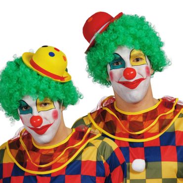 Pour peaufiner votre costume de clown choisissez un petit chapeau melon coloré à ajouter sur votre perruque de clown pour un plus bel effet !