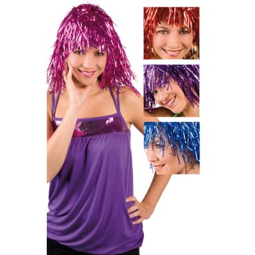Perruque lamée brillante en lumaline. C'est l'accessoire pas cher qui assurera la touche gaie et brillante de votre déguisement.