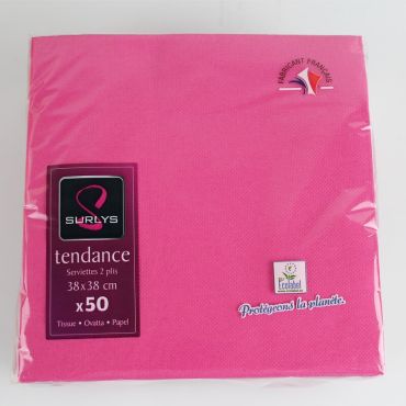 Sachet de 50 serviettes microgaufrées framboise. Dimensions pliées : 19cm x 19cm. Dimensions dépliées : 38cm x 38cm.
