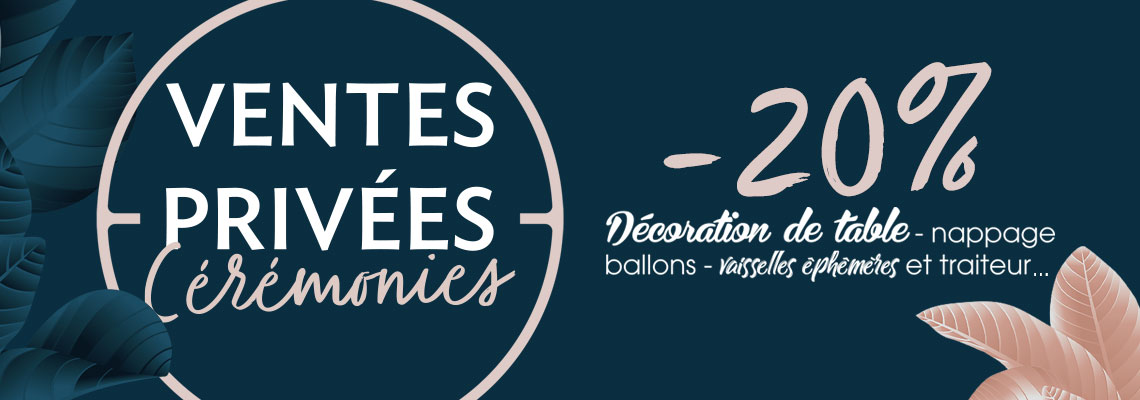 Le vendredi 06 mars 2020, des ventes privées spéciales Mariage et cérémonies sont à découvrir chez Jour de Fête. Profitez de 20% de remise sur vos achats.